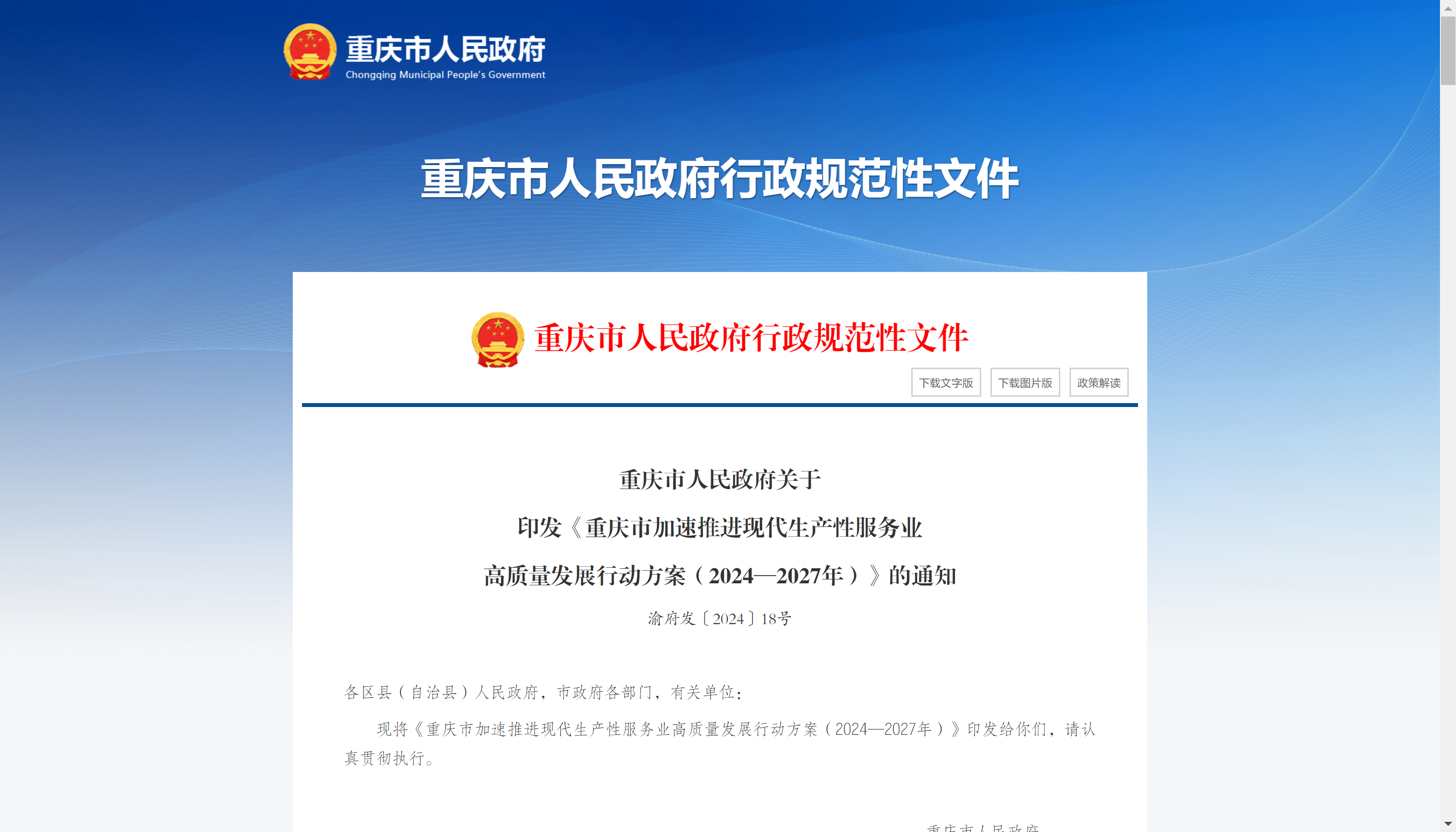 重庆市人民政府关于印发《重庆市加速推进现代生产性服务业高质量发展行动方案(2024—2027年)》的通知